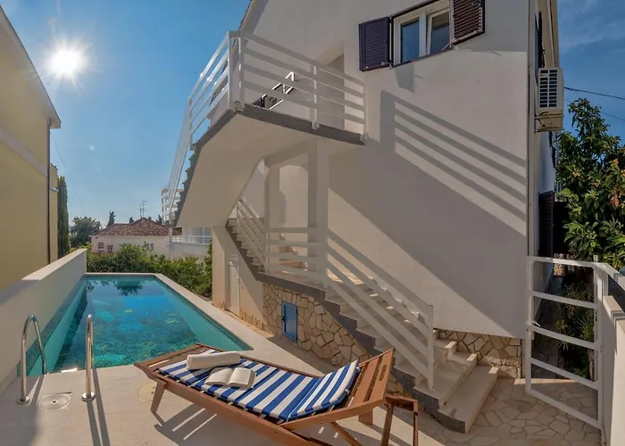 דירה זאת בעלת 130 מ"ר נמצאת במרחק של 5 ק"מ מנמל התעופה ספליט. בריכת שחייה מזמינה אורחים לצלילה.